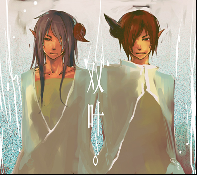 可是畫完後發現好像除了整體像之外這兩人一點都不雙(爆)